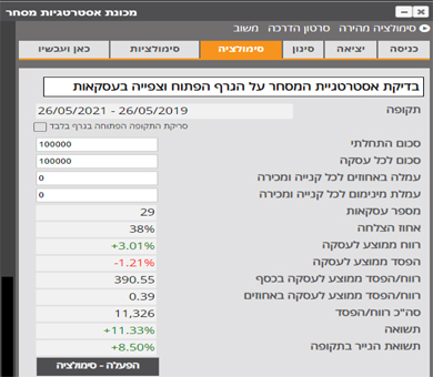 הגדר תנאים לכניסה ותנאים ליציאה מהעסקה על בסיס כלים טכניים. המכונה תבדוק ותציג את תוצאות אסטרטגיית המסחר ותאפשר לשפר אותה.