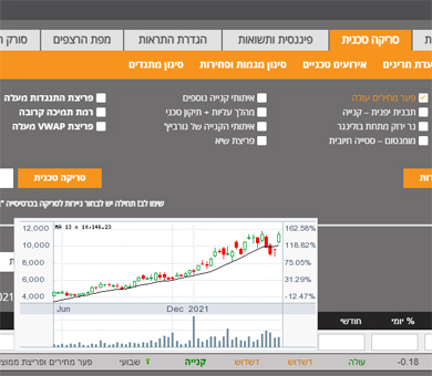 רק בבורסה גרף תמצא גם ממשק התראות, ניהול תיק אישי, חשבון DEMO וגולת הכותרת הסורק והמכונה – מערכות לאיתור אירועים טכניים ובניית אסטרטגיות השקעה.